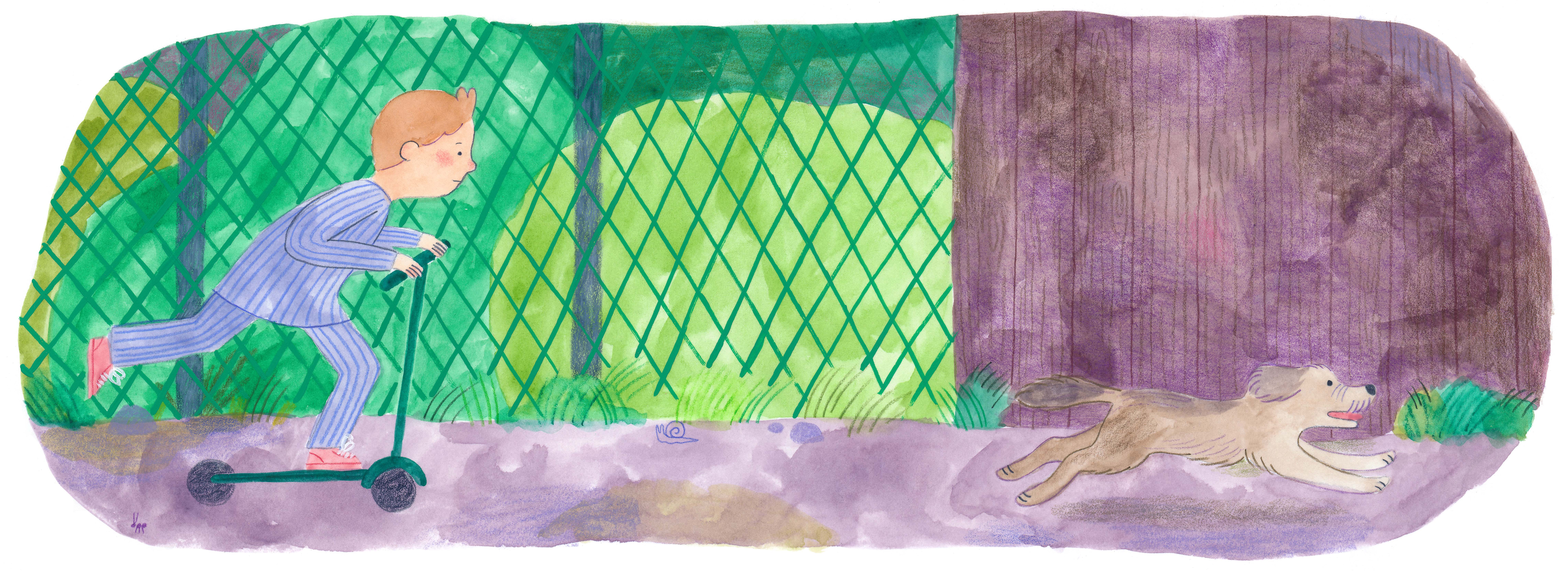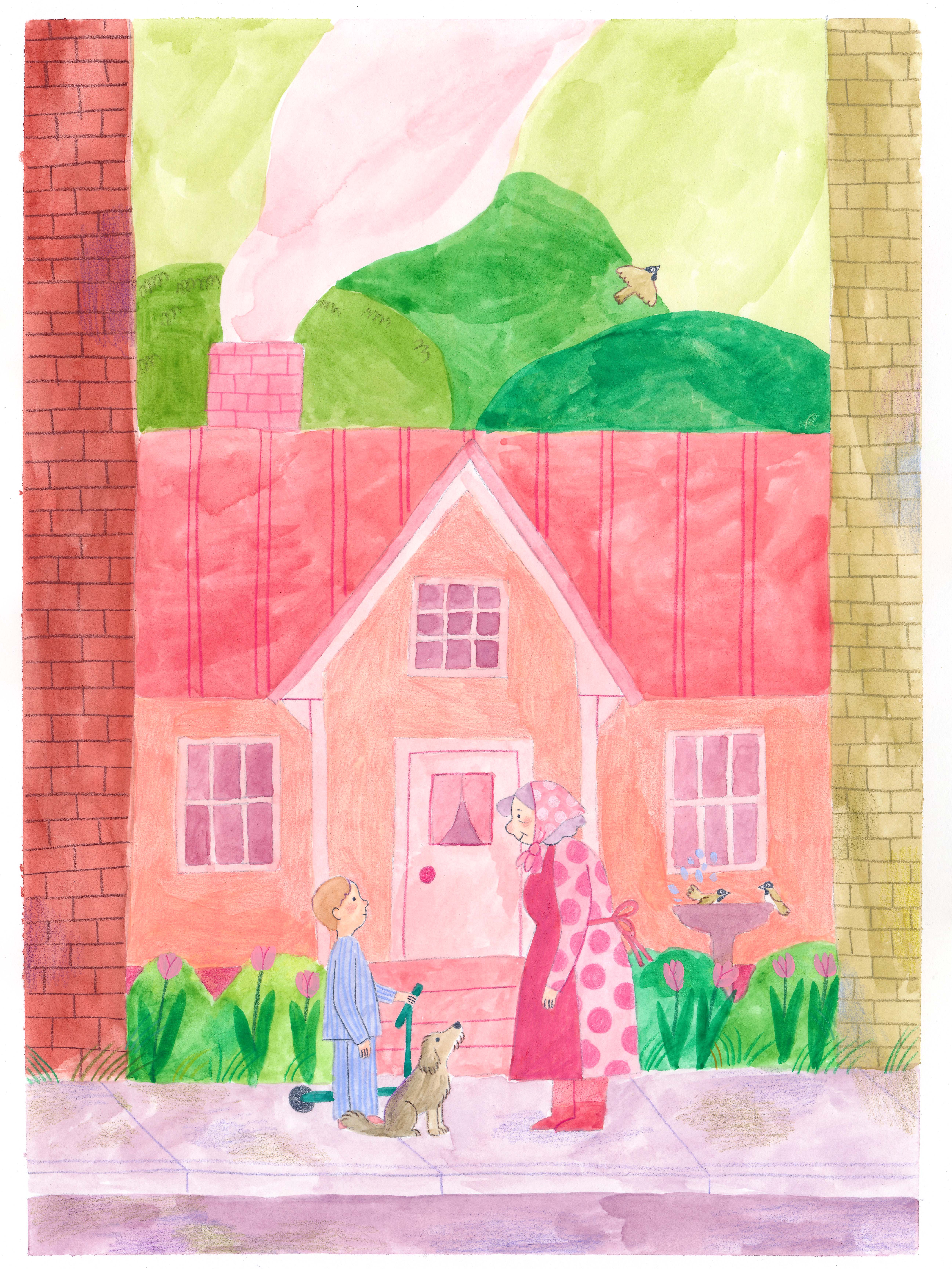 Illustrations à l’aquarelle, au crayon de couleur et à la gouache pour une histoire d’Élisabeth Cardin dans le